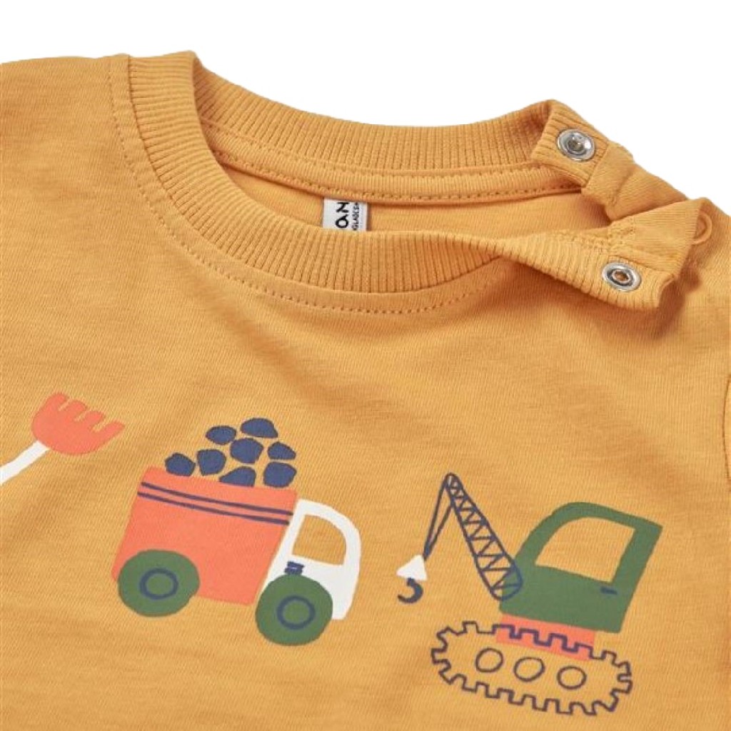 Camiseta bebe niño gruas color amarillo mostaza 25031