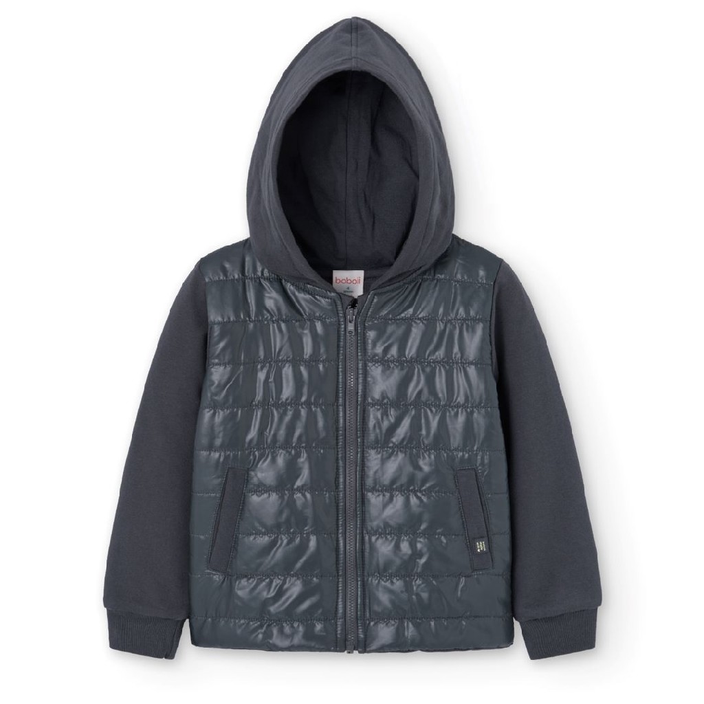 Chaqueta niña felpa combinada gris