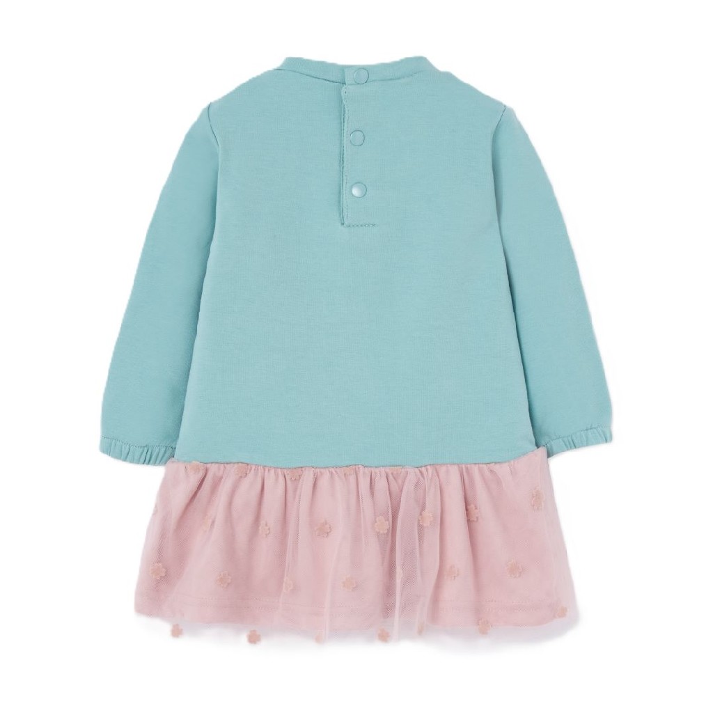 Vestido bebe niña conejito verde con falda de tul rosa 25034