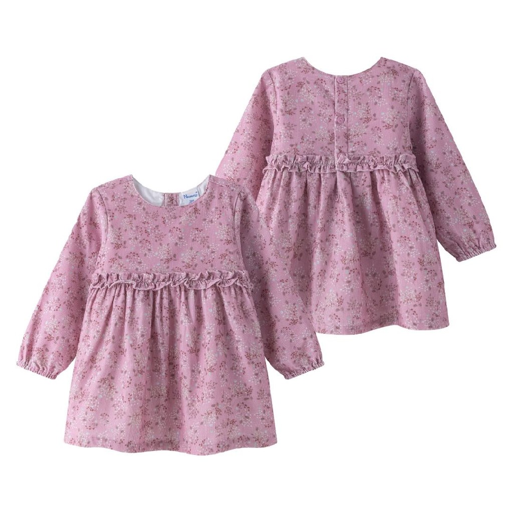 Vestido bebe niña de micropana con estampado de flores color rosa 9550