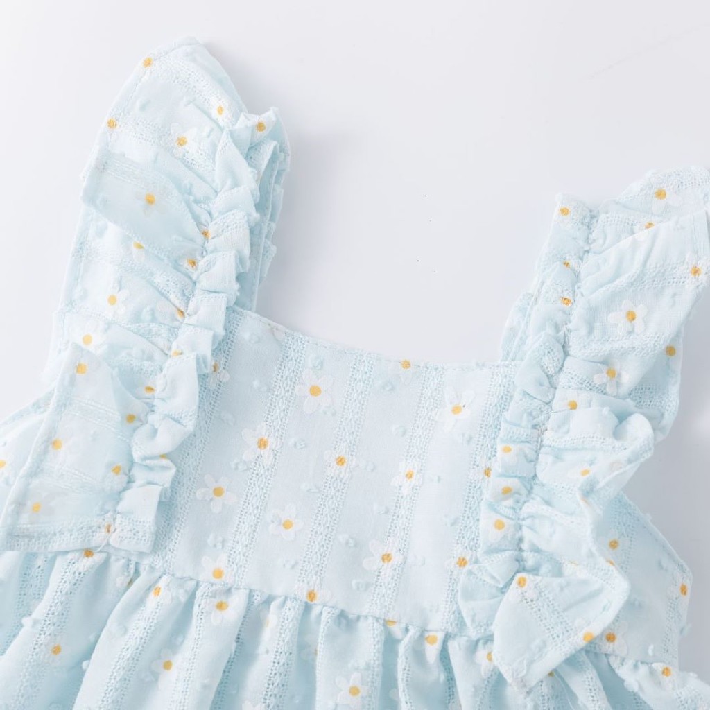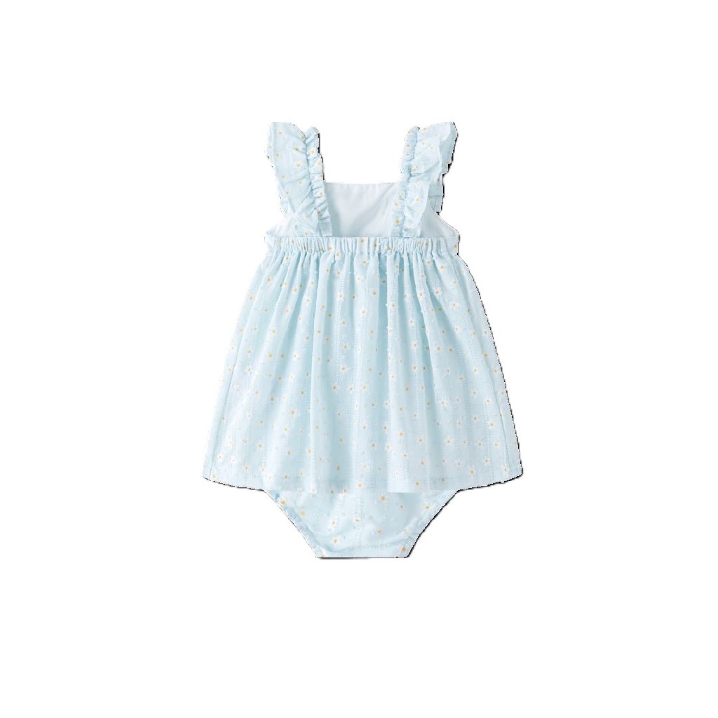 Vestido y braguita bebé niña margaritas verde con volantes 95506